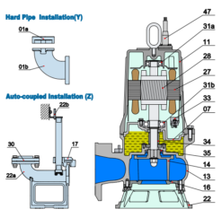 “Cơ cấu cắt” được tạo ra nhờ hoạt động kết hợp của lưỡi cacbua được tích hợp vào một bánh công tác không bị tắc và bề mặt bên trong dạng cưa của nắp hút. Cấu trúc này đảm bảo rằng các chất xơ lạ được cắt bỏ và nước thải được chuyển đi mà không bị tắc nghẽn.